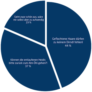 Natürlich ist eine Heidi-Frisur kein Muss zum Dirndl-Look. Offene Haare gehen auch, meistens bis es zu heiß wird. Dann kann man die Haare zu einem einfachen Knoten drehen und mit Klammer, Zopfgummi oder Haarnadeln feststecken.