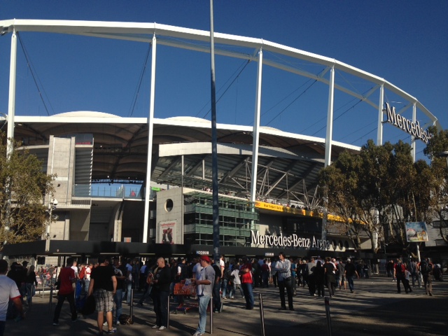 17:08 Uhr Perfektes Fussball-Wetter in der Mercedes-Benz-Arena. Die Fans freuen sich auf ein hoffentlich tolles Match.