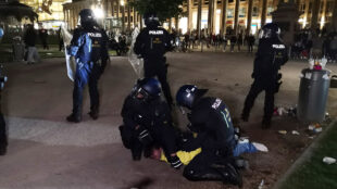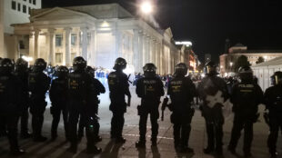 Sachbeschädigungen, Festnahmen, Polizisten verletzt