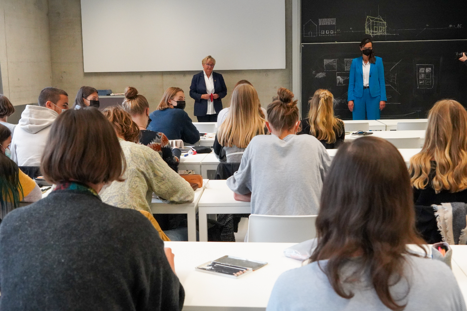 Bei ihrem Besuch der Hochschule für Technik Stuttgart traf die Wissenschaftsministerin außerdem Innenarchitektur-Studierende im dritten Semester. Für die Studenten war es am Montag der erste Tag in Präsenz. Die ersten beiden Semester fanden ausschließlich digital statt. „Ich fühle mich momentan wieder wie ein Erstsemester, alles ist so neu“, sagt eine Studentin im Gespräch mit Bauer. Nach einem Jahr Studium trifft sie endlich auch auf ihre Kommilitonen und hofft nun, das Studentenleben richtig erleben zu können. Das Land hat den Hochschulen zuletzt zusätzliche Mittel in Höhe von 13,5 Millionen Euro zukommen lassen für den erhöhten Aufwand und zusätzliches Personal bei der Durchführung des Studienbetriebs unter Pandemiebedingungen. Ingesamt unterstützt das Land seine Hochschulen seit Beginn der Pandemie mit rund 83 Millionen Euro.