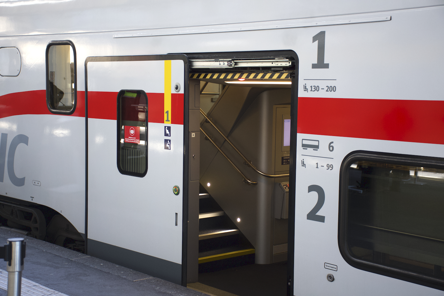 In den neuen IC-Zügen setzt die Deutsche Bahn vermehrt auf Verpflegung. Auf der Fahrt in die Schweiz können sich die Gäste an insgesamt fünf Automaten Snacks und Getränke für die Fahrt kaufen. Auch Geschäftsreisende sind auf der Strecke nach Böblingen gut versorgt: Das WLAN funktioniert gut und die Scheiben sind transparent genug für den Mobilfunk, sodass man in Zukunft auch im Zug mit stabiler Verbindung telefonieren kann. „Mit den neuen Doppelstockwagen können wir ab 2022 auch mehr Passagiere mitnehmen und so ebenfalls den Komfort erhöhen“, sagt Berthold Huber, Vorstand Personenverkehr der Deutschen Bahn.