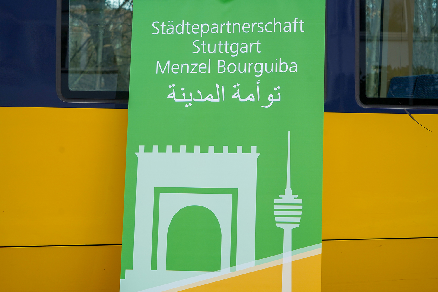50 Jahre besteht nun schon die Partnerschaft zwischen der Stadt Stuttgart und Menzel Bourguiba. Zum Jubiläum bekommt die tunesische Stadt ihr Wappen auf einen Stadtbahnwagen spendiert. Die Taufe nahmen Sozialbürgermeisterin Alexandra Sußmann und der tunesische Konsul Mohsen Sebai vor.