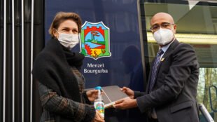 1971 begann die Städtepartnerschaft zwischen der Landeshauptstadt Stuttgart und Menzel Bourguiba im Norden Tunesiens. Zum 50-jährigen Bestehen wurde nun das Wappen von Menzel Bourguiba auf einem Stadtbahnwagen der SSB verewigt. Sozialbürgermeisterin Alexandra Sußmann und Mario Laube, kaufmännischer Vorstand der SSB, empfingen dazu den Konsul der tunesichen Republik, Mohsen Sebai im SSB-Zentrum. Gemeinsam tauften sie den Wagen auf „Menzel Bourguiba“ und enthüllten das Wappen. Dafür wurde übrigens original Wasser aus Tunesien verwendet.