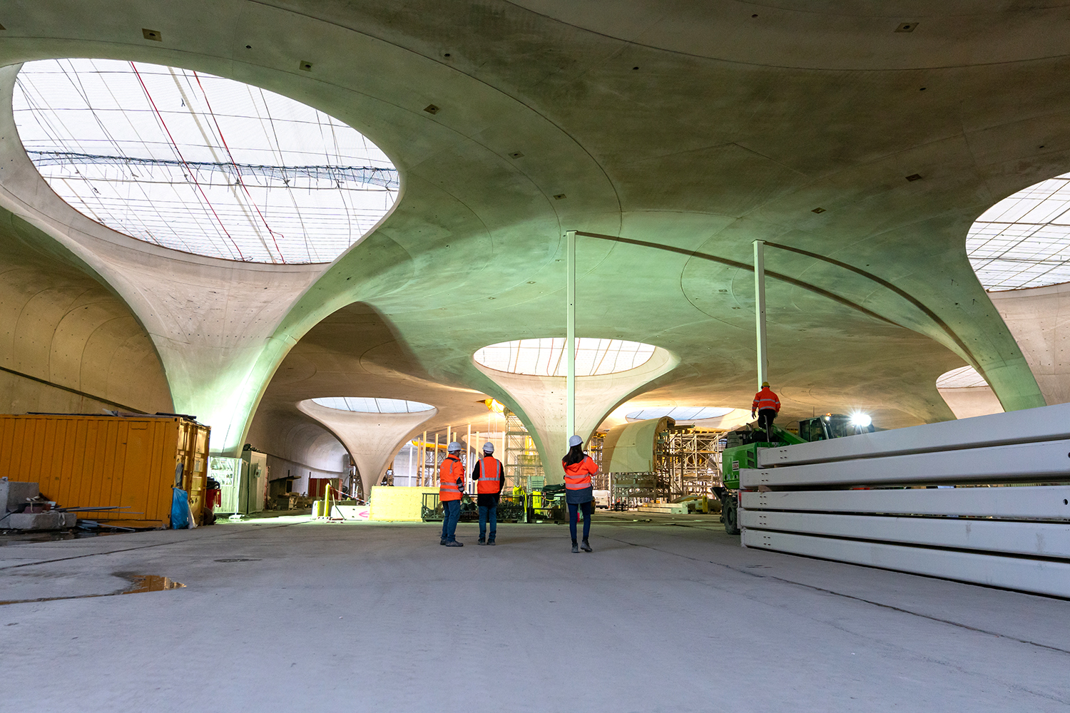 Ein Jahr nach der ursprünglich geplanten Fertigstellung sind 18 von 28 Kelchstützen im Rohbau fertig. (Foto: DB Projekt Stuttgart-Ulm GmbH / Jannik Walter)
