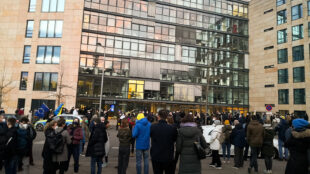 Demo gegen Krieg in Ukraine: Hunderte Menschen vor Russischem Konsulat in Stuttgart
