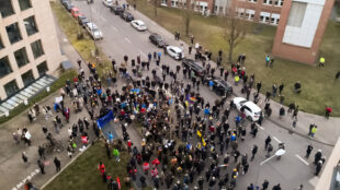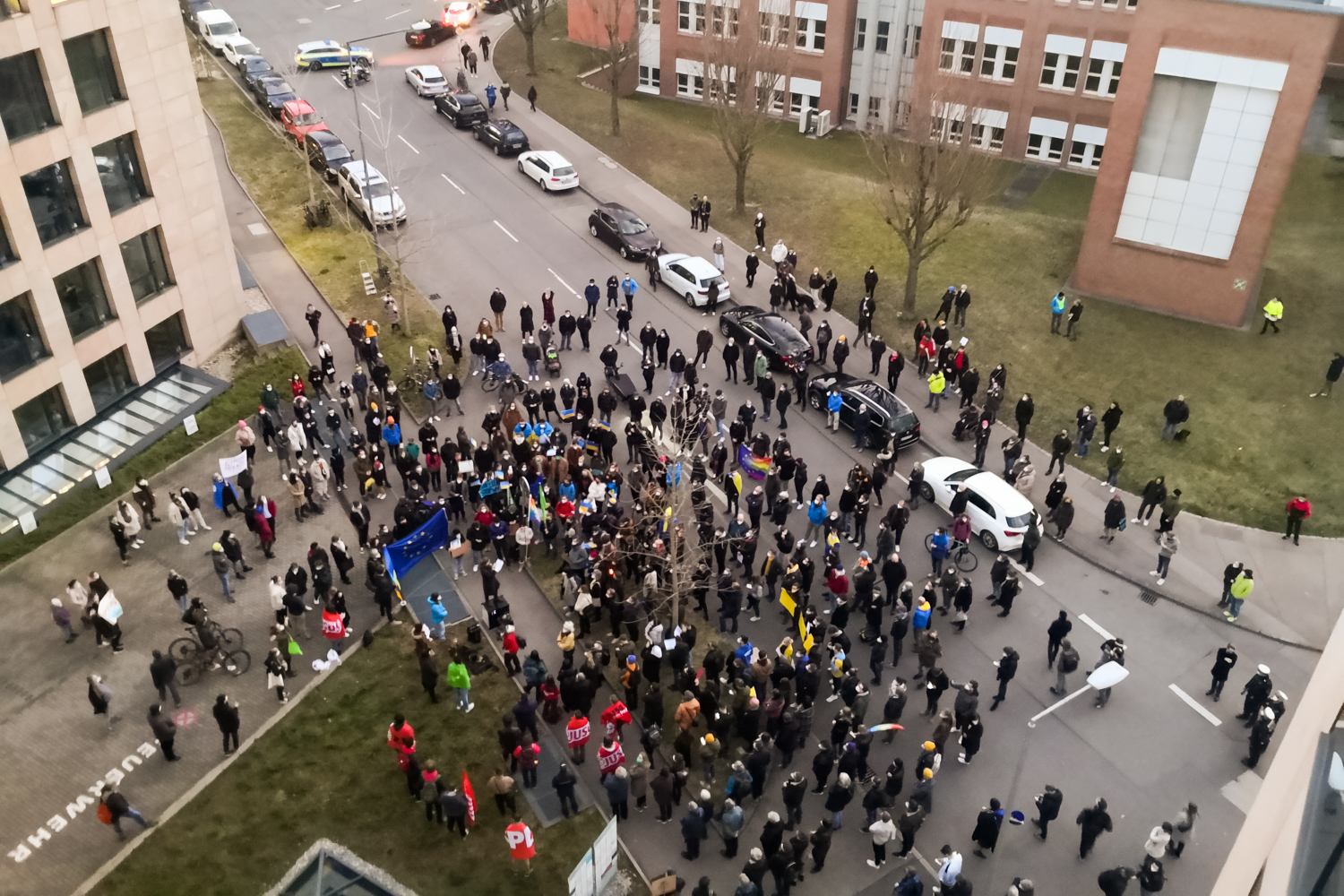 Die Jusos, Grüne Jugend, Junge Union und Junge Liberale haben am heutigen Abend zu einer Demonstration aufgerufen, um die Stimme gegen den Krieg in der Ukraine zu erheben. Angesichts des russischen Angriffs auf die Ukraine haben sie für den heutigen Donnerstag um 18 Uhr gemeinsam zu einer Protestkundgebung vor dem russischen Honorarkonsulat in der Leitzstraße 45 in Stuttgart-Feuerbach aufgerufen. Das Motto des Abends lautete: „Für Frieden in Europa und Solidarität mit der Ukraine.“