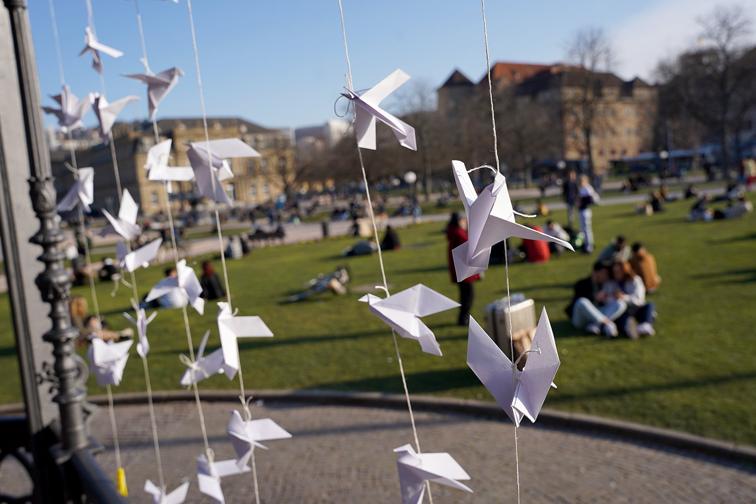 Die Stuttgarter Jugendhausgesellschaft hat am Wochenende ein Friedenszeichen für die Ukraine gesetzt. Bei einer Mitmachaktion wurden jede Menge Friedenstauben gebastelt, die dann am Schlossplatz aufgehängt wurden.