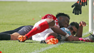 47. Min. Nach einer Ecke versenkt Mavropanos den Ball im Tor. Er zählt aber nicht, weil Tomas zuvor seinen Gegenspieler regelwidrig weggeschoben hat.