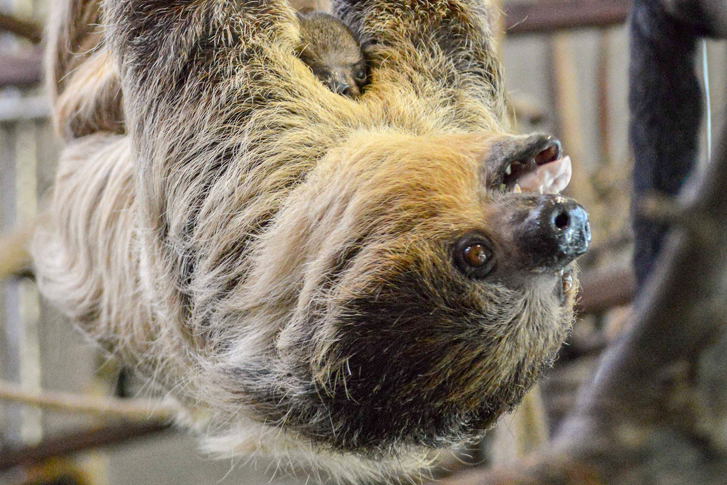Faultier Marlies ist gleichzeitig Mutter und Großmutter geworden. Das Zweifingerfaultier und ihre Tochter Edeka bekamen Ende April Nachwuchs. Für die Wilhelma etwas ganz besonderes. Jetzt sind die beiden Winzlinge auch für Besucher zu sehen.