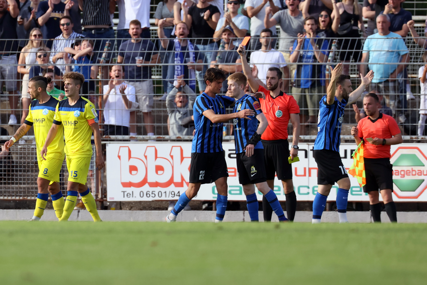 75. Min. Gelb-Rote Karte für die Kickers! Zagaria sieht für ein Foul gut 25 Meter vor dem eigenen Kasten den zweiten Gelben Karton. Das bedeutet auch für ihn Feierabend. Die Blauen müssen jetzt in doppelter Unterzahl weiterkämpfen.