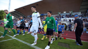 30. Min. Gelb-Rote Karte für die Kickers! Das ist bitter. Nico Blank bekommt für ein Einsteigen am eigenen Sechzehner die zweite Gelbe Karte und muss mit Gelb-Rot vom Platz. Harte Entscheidung. Damit wird die Aufgabe für die Blauen hier ganz schwer.