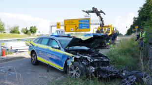 Am Dienstag gab es eine Verfolgungsfahrt mit einem schlimmen Ende. Ein Streifenwagen verfolgte ein flüchtiges Auto und kollidierte dabei mit einem Fahrbahnteiler. Zwei Polizisten sind schwer verletzt, eine Auszubildende kam mit leichten Verletzungen davon. Der flüchtende Fahrer konnte unbeschadet entkommen.