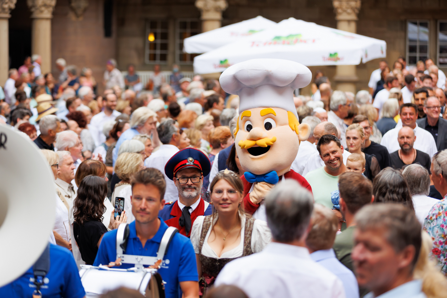 Im Innenhof des Alten Schlosses wurde das Weindorf mit einem Festakt eröffnet. In seiner Rede empfahl der Landwirtschaftsminister Peter Hauk (CDU) den Württembergern, nicht allzu geizig zu sein. „Gute Qualität kostet“, sagte er. Man solle den Genuss nach der Pandemie nicht hinten anstellen. „Diesmal darf es auch ein Viertele mehr sein.“ Hauk ging zudem auf die Problematik des Klimaschutzes ein. „Wir brauchen mehr Grün in Stuttgart. Es wird extreme Wassersituationen geben“. Damit forderte der Christdemokrat den Stadtrat und seinen Parteifreund OB Nopper auf, mehr Akzente in der Umweltpolitik zu setzen. Man müsse schließlich mit dem Klimawandel in der Stadt leben können.