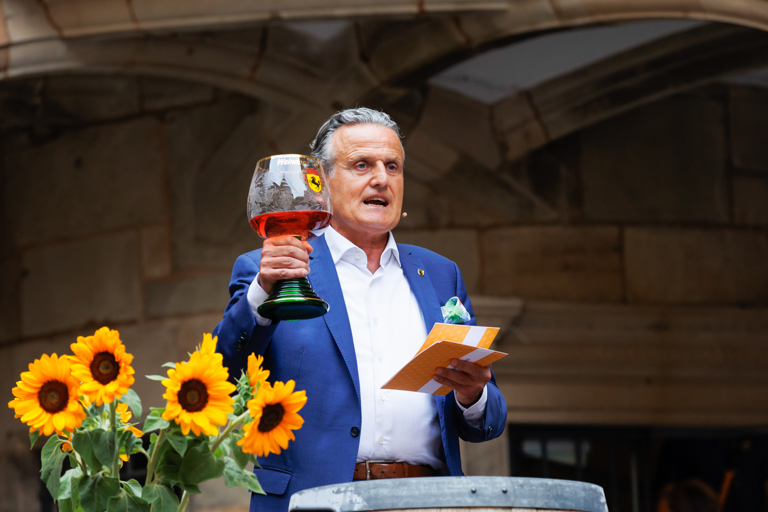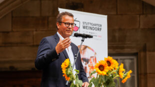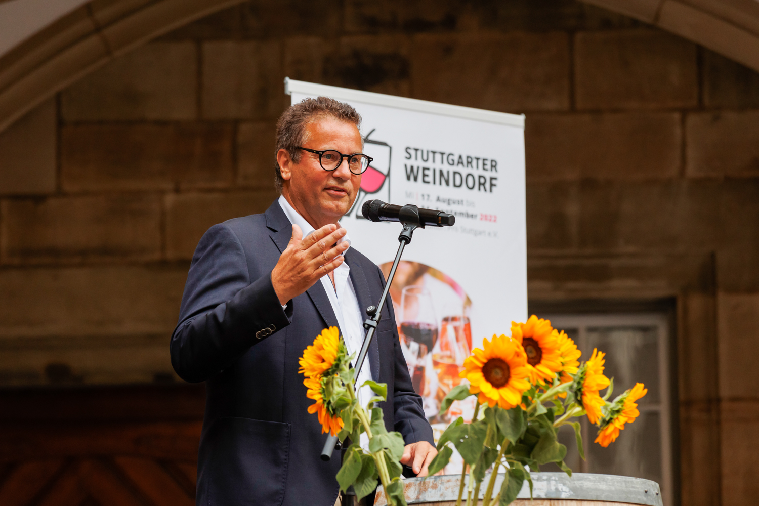 Erstmals hat OB Frank Nopper ein großes Fest in der Landeshauptstadt eröffnen dürfen. In seiner launigen Rede outete sich der OB als großer Freund des Weindorfs. „Es gehört meinen Lieblingsfesten, das ich in meinen Sturm und Drang-Zeiten an 11 von 12 Tagen besucht habe“, gestand Nopper. Auf dem Weindorf werden viele Freundschaften geschlossen und verstärkt. „Hier wird miteinander geschlotzt, gefeiert, geflirtet und gefachsimpelt.“