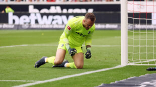 35. Min. Mavropanos mit der Chance zum Ausgleich. Nach einer Flanke von Sosa kommt der Grieche zum Kopfball, den Freiburgs Torhüter Flekken von seinem linken Eck zur Ecke abwehren kann.