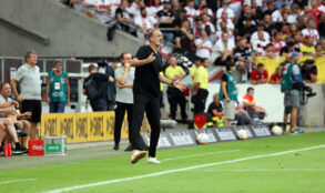 Pellegrino Matarazzo, VfB-Cheftrainer: „Wir sind gut in das Spiel reingekommen. Der erste Fehler im Spiel wurde bestraft, danach haben wir Zeit gebraucht, um uns zu stabilisieren. Wir müssen die Niederlage jetzt abhaken und unseren Blick auf Köln richten.“