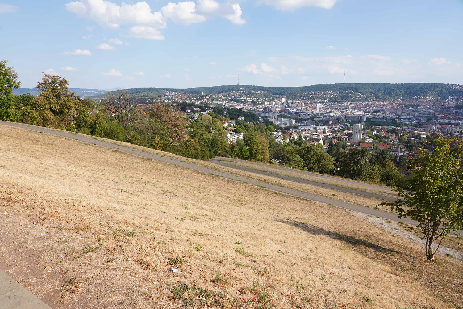 Ein schönes Picknick auf der grünen Wiese im Killesbergpark? In diesem Jahr ist das nicht möglich. Denn statt saftigem Grün gleichen die Parks in der Schwabenhauptstadt momentan eher einer Wüste. Besonders schlimm ist die Trockenheit im Killesbergpark und in den Wilhelma-Wiesen im Rosensteinpark. Auch am Bismarckturm und am Egelsee hat die Dürre große Spuren hinterlassen. Sogar die Dinos im Rosensteinpark sind nur noch von brauner Einöde umgeben.