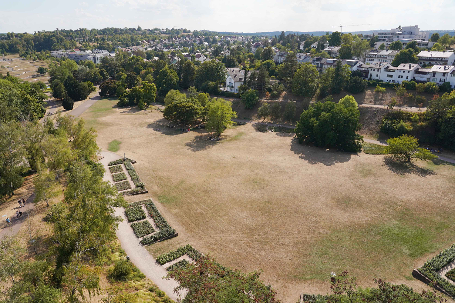 Wo bleibt der Regen? Das dürften sich viele Stuttgarter zuletzt gefragt haben. Hitze und Dürre setzen der Landeshauptstadt zu. Aktuelle Fotoaufnahmen zeigen nun, wie ausgetrocknet die Wiesen in den Parks der Stadt sind. Besonders ersichtlich wird dies auf dem Killesberg und im Rosensteinpark.