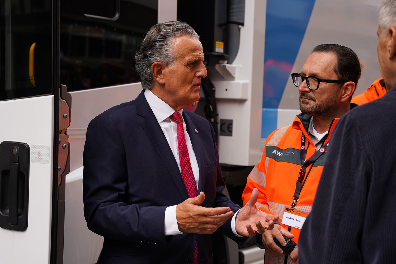 Der Oberbürgermeister in orange? Frank Nopper trug am gestrigen Samstag ein für ihn ungewöhnliches Outfit. Auf dem Stuttgarter Marktplatz schlüpfte Nopper kurzerhand aus seinem Sacko und zog stattdessen die Jacke der Abfallwirtschaft an. Grund dafür ist das neue Abfall-Sammelfahrzeug, das ihm gestern von Hersteller Mercedes Benz übergeben wurde. Das Besondere an dem neuen Fahrzeug: Es ist vollelektrisch. „Wir sind stolz und glücklich, dass das erste vollelektrische Abfallsammel-Fahrzeug nicht nach Berlin, München oder Frankfurt geliefert wurde, sondern nach Stuttgart“, sagt Oberbürgermeister Frank Nopper. Die Übergabe sei deshalb ein großer und wichtiger Moment, so Nopper weiter.