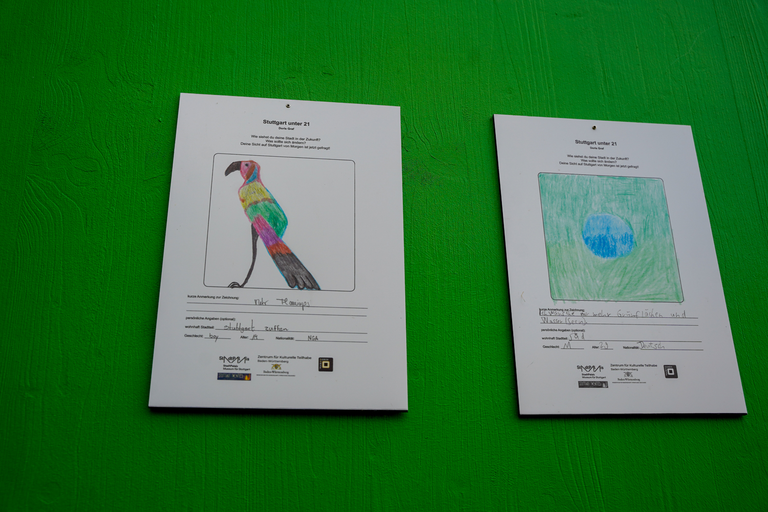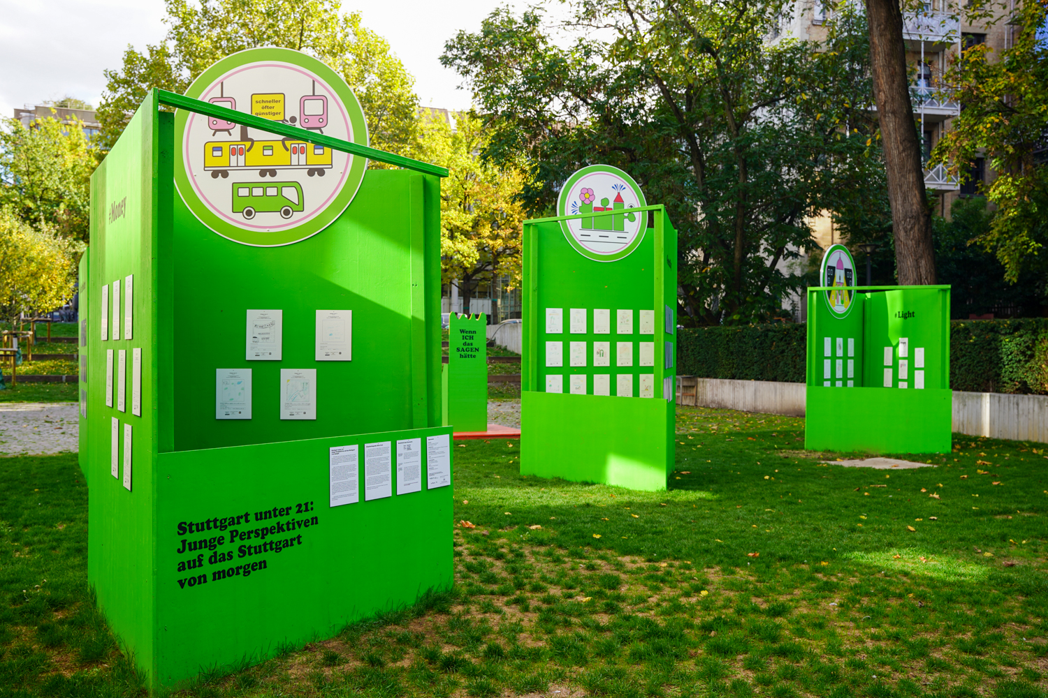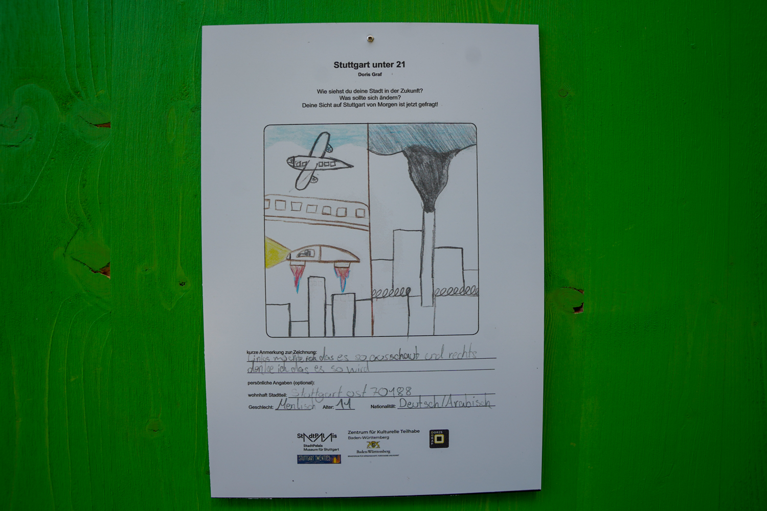 Mehr als 200 junge Stuttgarter unter 21 Jahren beteiligten sich an dem Projekt „Stuttgart unter 21“. Sie veranschaulichten ihre Wünsche, Vorstellungen und Erwartungen von Stuttgart in der Zukunft. Wie es für Ausstellungen üblich ist, sind die Vorstellungen der Jugendlichen künstlerisch ausgedrückt. Die Ausstellung ist seit dem 23. September geöffnet. Sie kann noch bis zum 30. Oktober im Garten des Stadtpalais besucht werden. Der Eintritt zur Ausstellung ist frei.
