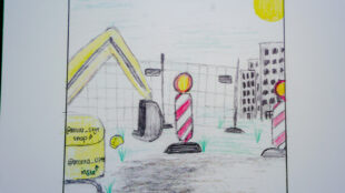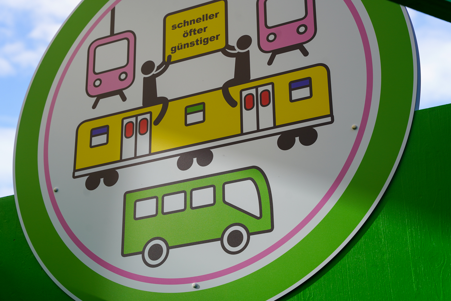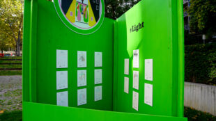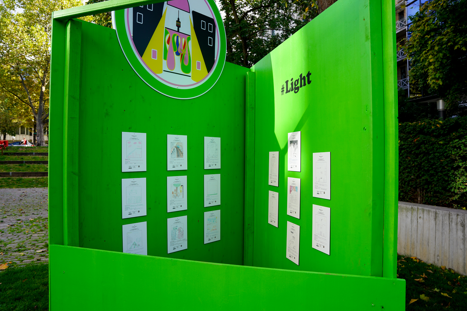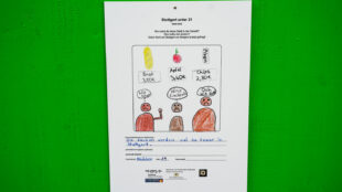 Wer sich wundert, dass die Bilder nicht nach einfachen Kritzeleien aussehen, für den gibt es eine Erklärung. Die gesammelten Werke der Jugendlichen wurden von der Stuttgarter Künstlerin Doris Graf nach Themen und Motiven geordnet. Die Künstlerin entwickelte dann piktografische Bilder aus den Zeichnungen, die man jetzt im Garten des Stadtpalais sehen kann. Doris Graf kuratiert die Ausstellung „Stuttgart unter 21“ zusammen mit den beiden Schülerinnen Cora und Charlotte.
