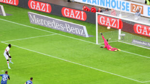 87. Min. Silas schnürt fast den Dreierpack, der Ball landet aber nur am Lattenkreuz.