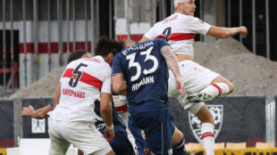 71. Min. TOR FÜR STUTTGART! Ist das die Entscheidung? Nach einem Sosa-Freistoß kann die VfL-Abwehr nicht ordentlich klären. Endo reagiert am schnellsten und drischt die Kugel in die Maschen.