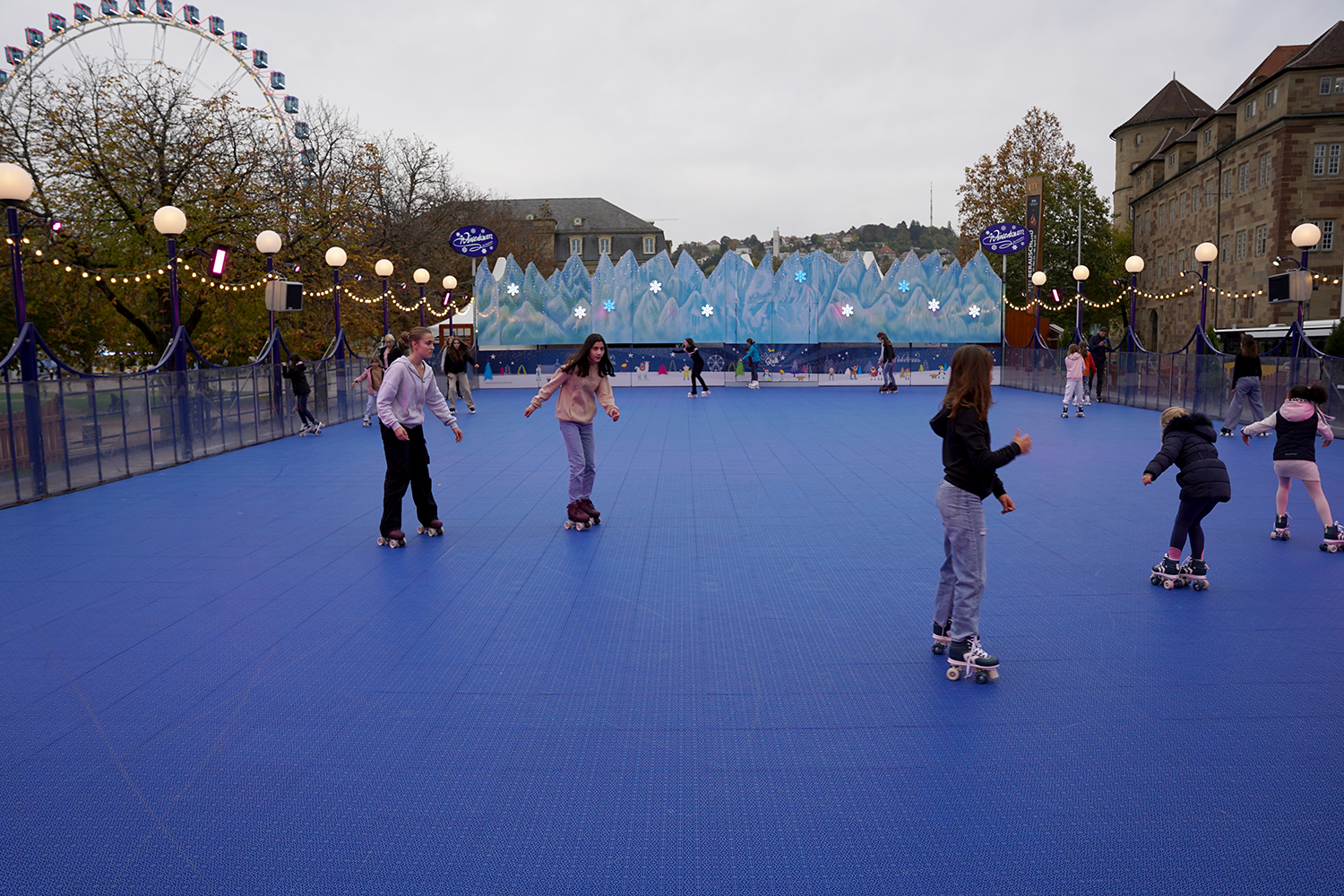 Rollen statt Kufen: Der Wintertraum ist auch in diesem Jahr wieder auf dem Schlossplatz zu finden. Doch anders als gewohnt. Statt der üblichen Eislaufbahn haben die Betreiber eine Kunststoffbahn aufgebaut, auf der man nun mit Rollschuhen seine Runden drehen kann. Die Buden mit Essen und Glühwein gibt es natürlich dazu. Wir zeigen euch hier einige Eindrücke der neuen Bahn.