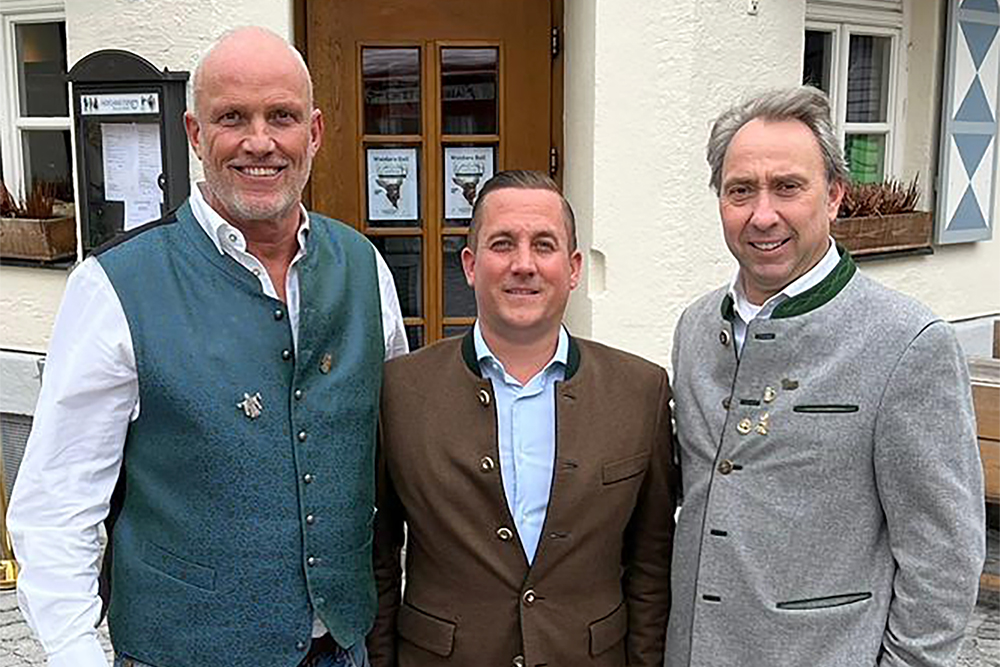 Der neue Festwirt des Fürstenberg-Zeltes Moritz Haake (Mitte) mit seinen Kollegen Alexander Baehr (l.) und Werner Hochreiter (r.). (Foto: Fürstenberg-Brauerei)