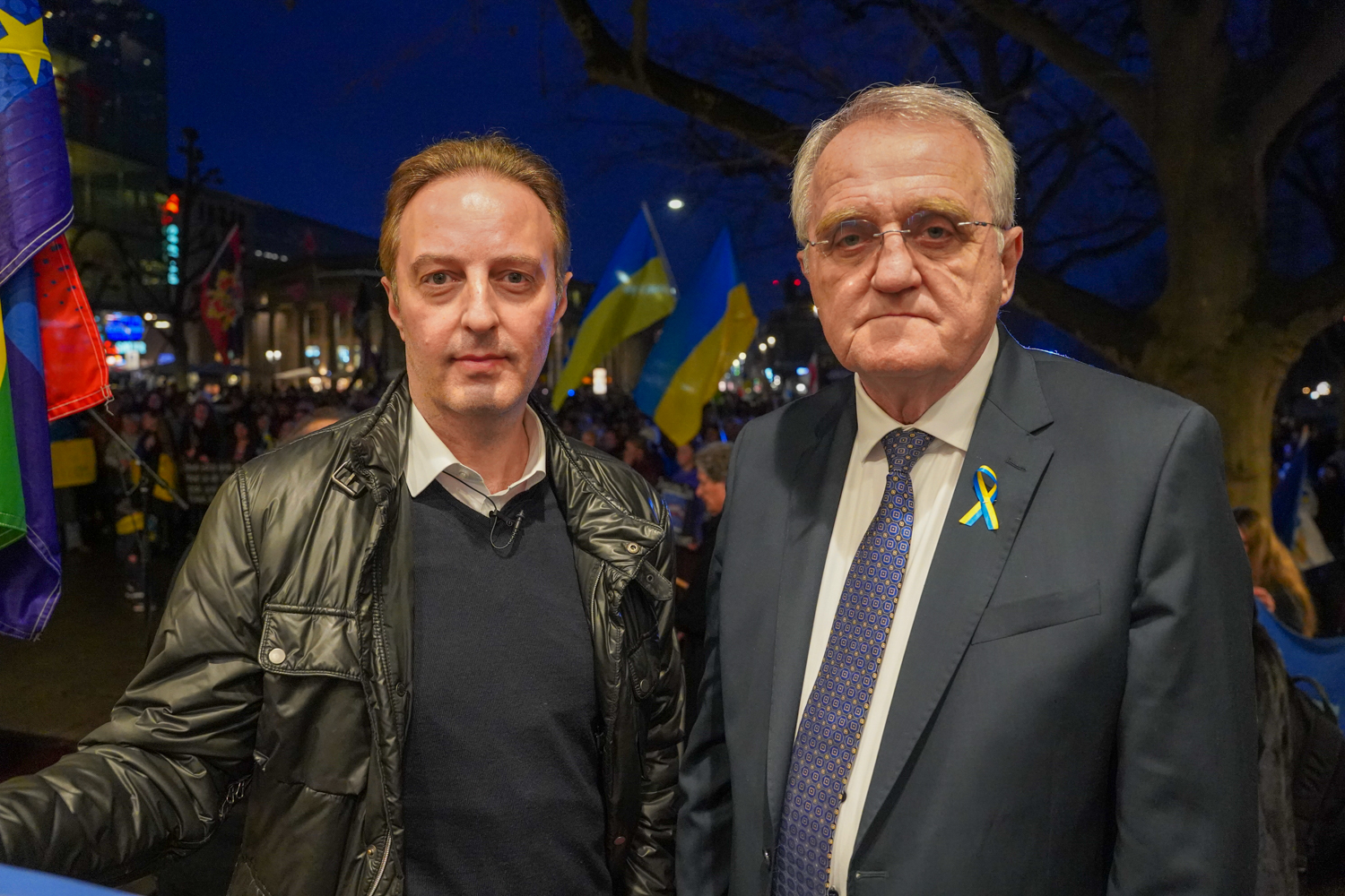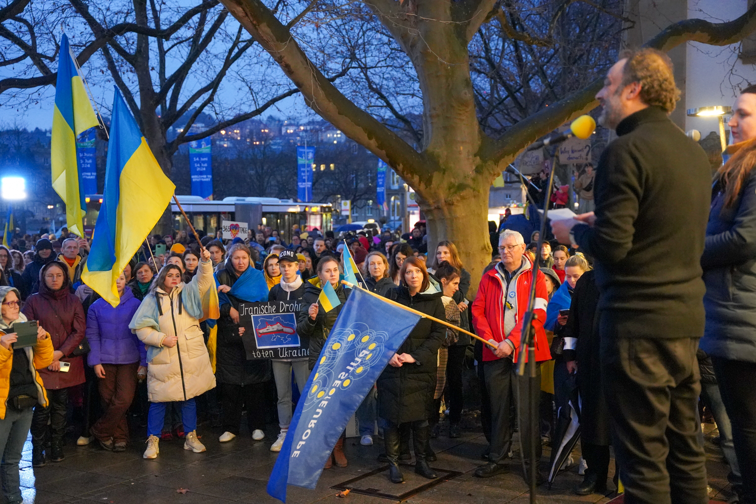 Am Abend des 24. Februar 2022, dem Tag, als Russland seinen Angriff auf die Ukraine startete, versammelten sich einige Hundert Demonstranten vor dem inzwischen geschlossenen russischen Honorarkonsulat in der Leitzstraße. Es war die erste von zahlreichen Kundgebungen in Stuttgart, die seitdem stattgefunden haben. Auch an diesem Freitag, genau ein Jahr später, wurde in Stuttgart gegen den russischen Angriffskrieg demonstriert. Dabei sprachen unter anderem der Europaabgeordnete Rainer Wieland (CDU) sowie die Bundestagsabgeordneten Sebastian Schäfer (Grüne) und Macit Karaahmetoglu (SPD).