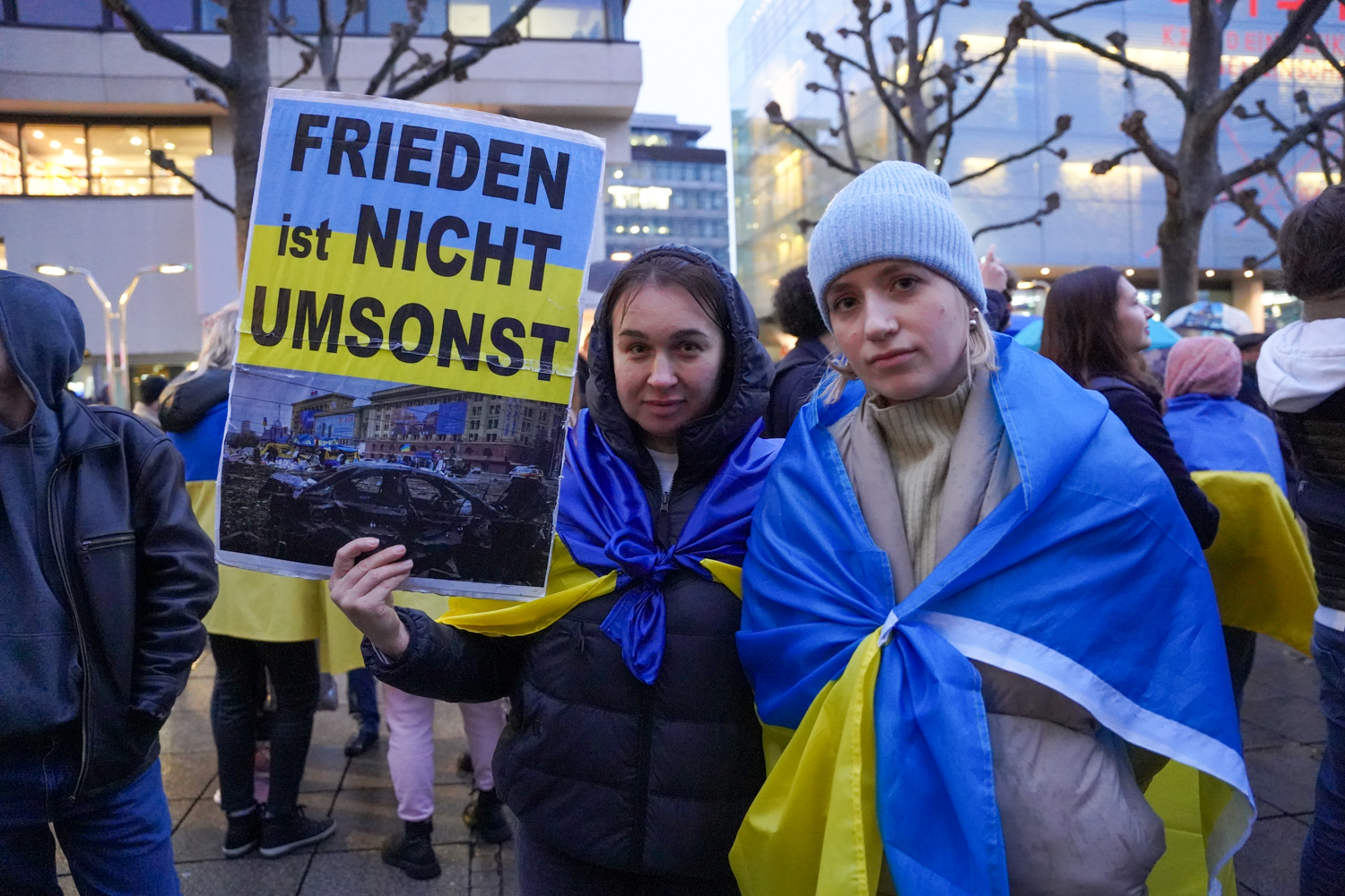 Am heutigen Freitag jährt sich der russische Angriffskrieg in der Ukraine. Ein Krieg, der unermessliches Leid über die ukrainische Bevölkerung brachte und die Friedensordnung in Europa jäh zerstörte. Zum Jahrestag veranstaltete die europäische Bürgerbewegung Pulse of Europe am heutigen Freitagabend auf dem Schlossplatz eine Friedens- und Solidaritätskundgebung. Wir haben die Fotos dazu.