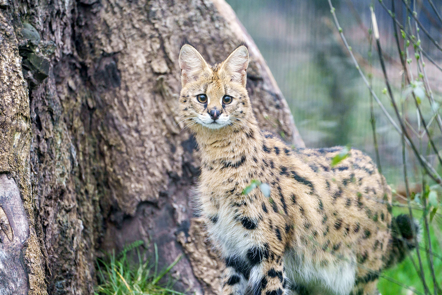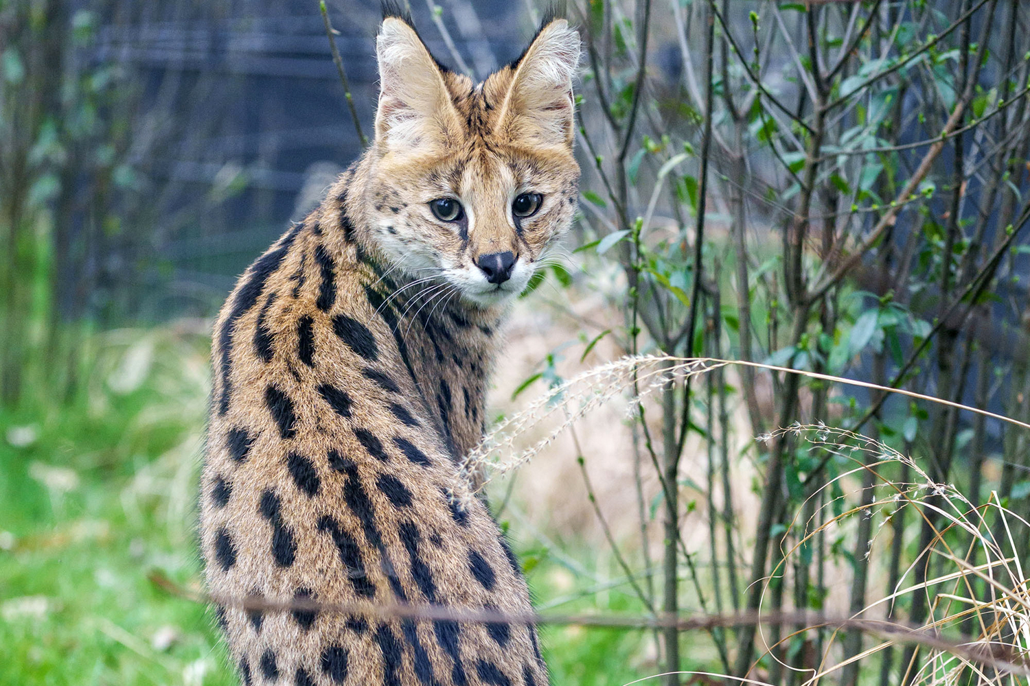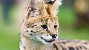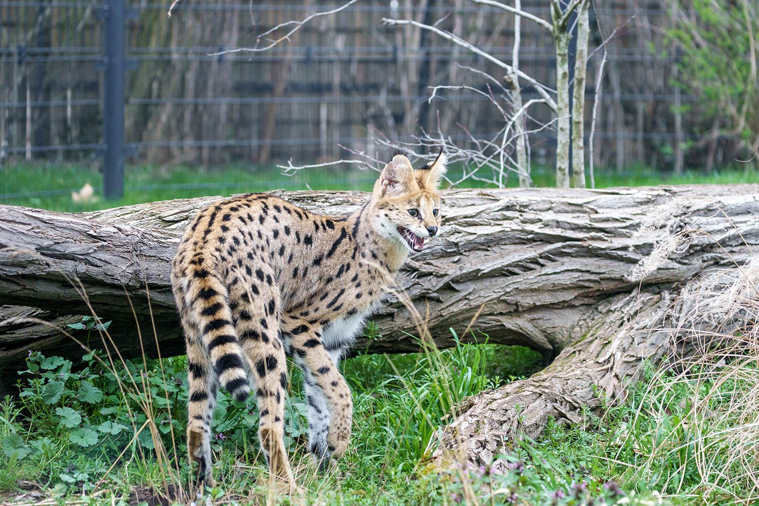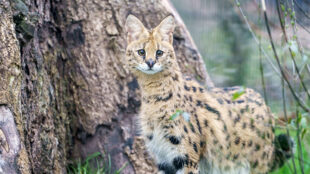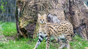 Die langbeinigen Jäger, die ursprünglich aus Afrika stammen, ernähren sich in der freien Wildbahn überwiegend von kleinen Nagern, Vögeln oder Reptilien, indem sie vorsichtig durchs Grasland streifen und die Ohren spitzen. Haben sie eine Beute lokalisiert, verharren sie regungslos, bis sie zum Sprung ansetzen – so wie wir es von Hauskatzen kennen, die im Gras auf Wühlmäuse warten. Bei Servalen sieht das allerdings wesentlich spektakulärer aus: Sie können bis zu sechs Meter weit und vier Meter hoch springen, weshalb die neue Serval-Anlage auch mit Spezialnetzen überspannt ist. Mit ihrer enormen Sprungkraft können Servale sogar Vögel in der Luft fangen.